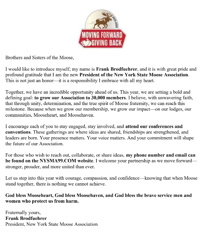 IMPORTANT NOTICE: The Loyal Order of Moose is a private organization. All activities and events referred to on this website and the Moose newsletter are available to members in good standing and their qualified guest. This website is for informational purposes with proprietary information intended for members only. General information is available to the public at large, but should not be construed to be a solicitation for membership. This website is an initiative of the New York State Moose Association and is not sanctioned by the Loyal Order of Moose International or any subsidiary thereof. All logos, trademarks and service marks pertaining to the LoyalOrder of Moose and or its programs or degrees are copyrighted by Moose International, Inc. Mooseheart, Illinois.